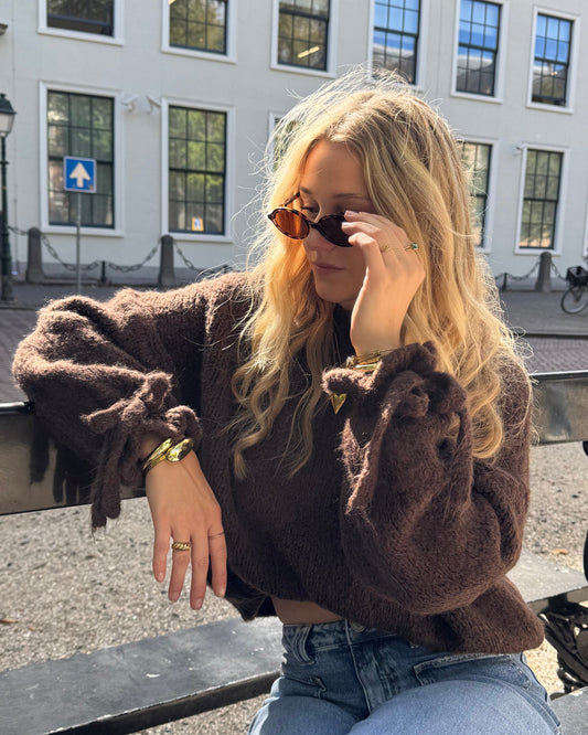 'STAY WITH ME' KNIT MET STRIKJES BIJ DE POLS - BRUIN