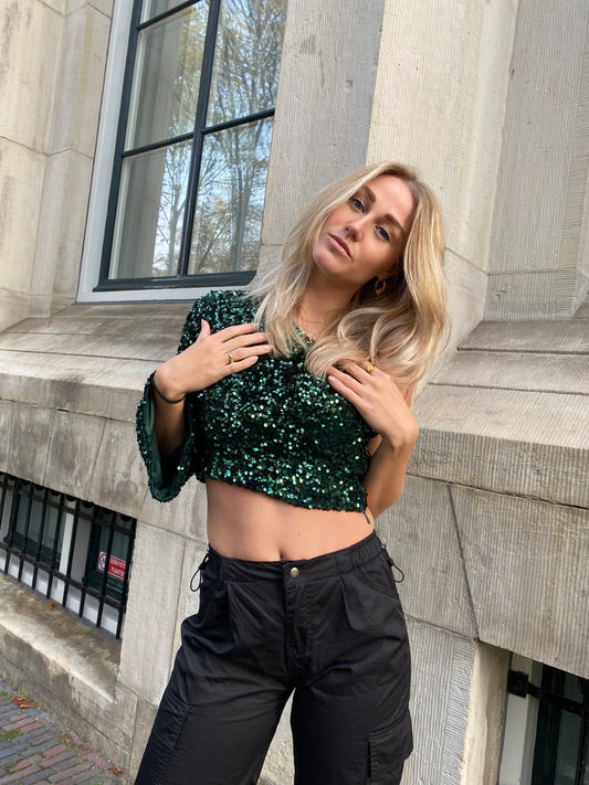 'FESTIVAL LOOK' GEHAAKTE GLITTER TOP - WIT